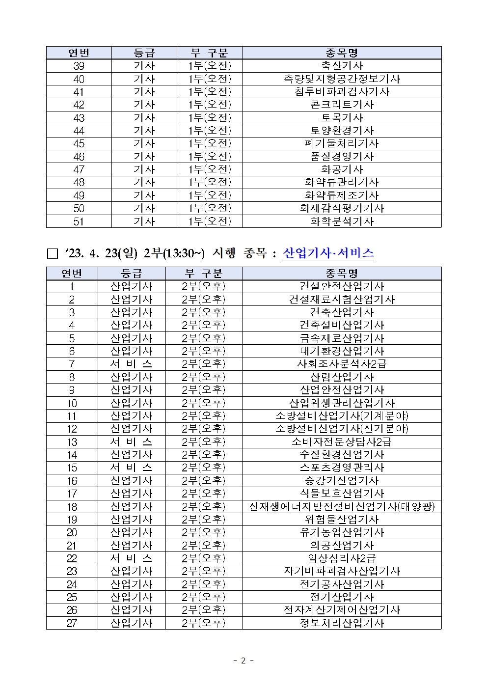 | 이전글 | 2023년 기사 제2회 필기시험 원서접수 관련 수험자 주요사항 안내 |