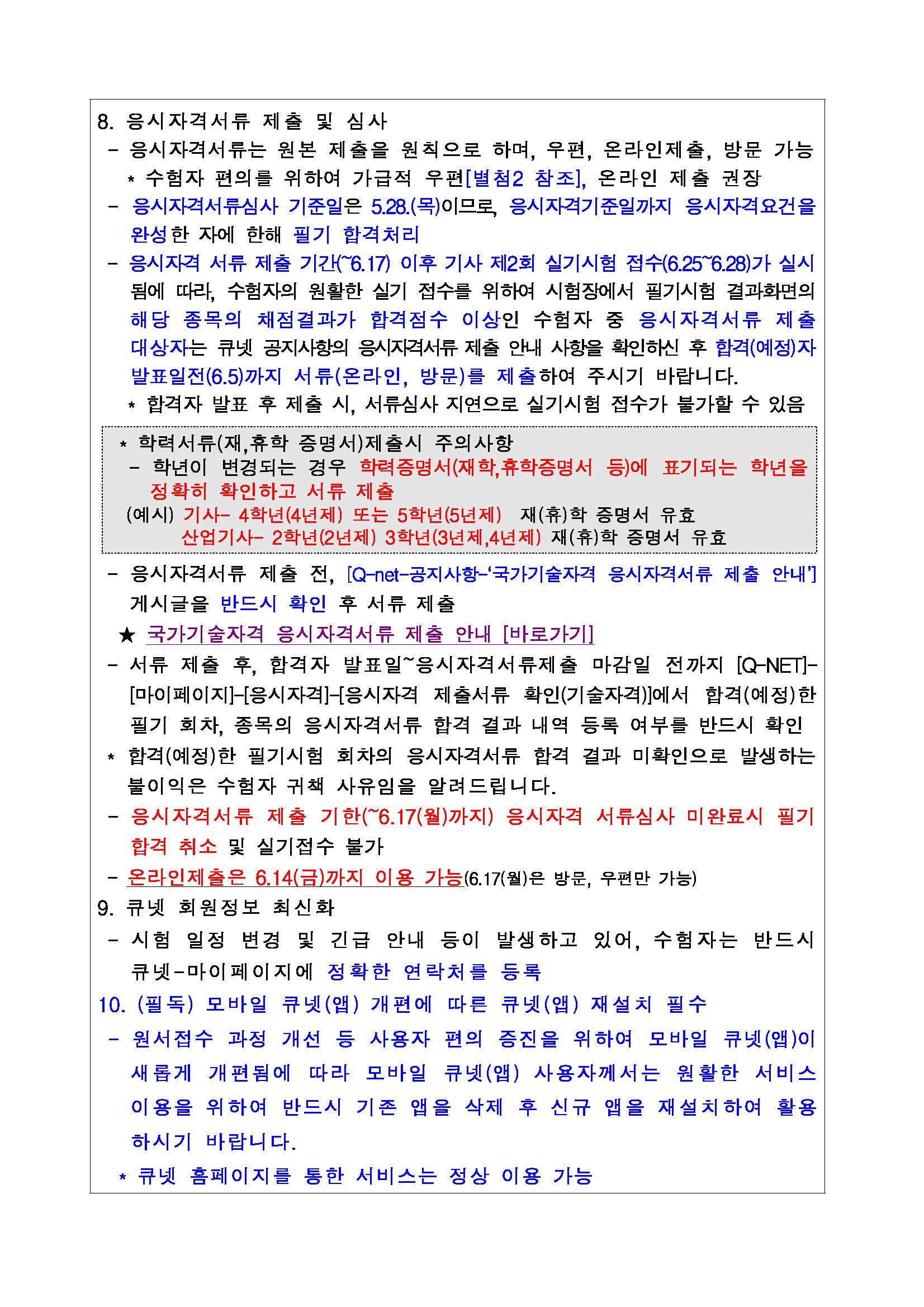 2024년도 기사 제2회 필기시험 원서접수 주요 안내사항