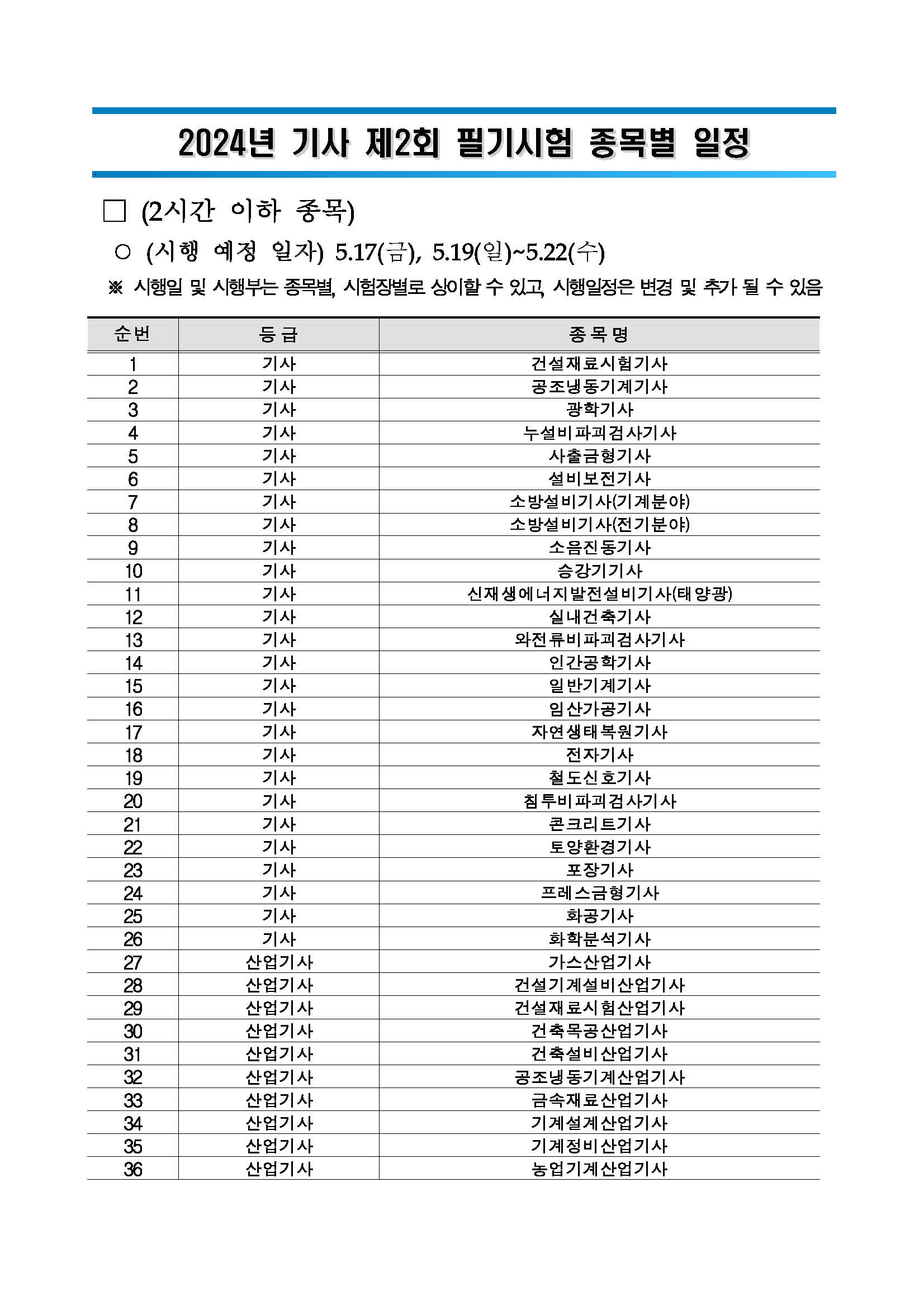 [8][붙임2] 2024년 기사 제2회 필기(CBT) 종목별 일정.pdf