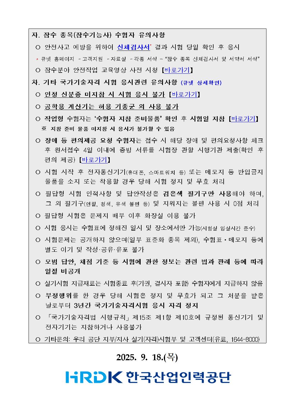 ★ 등급별 분산접수 알림 (산업기사, 서비스) 2025.09.22.(월) 10:00 ~ (기사) 2025.09.22.(월) 14:00 ~